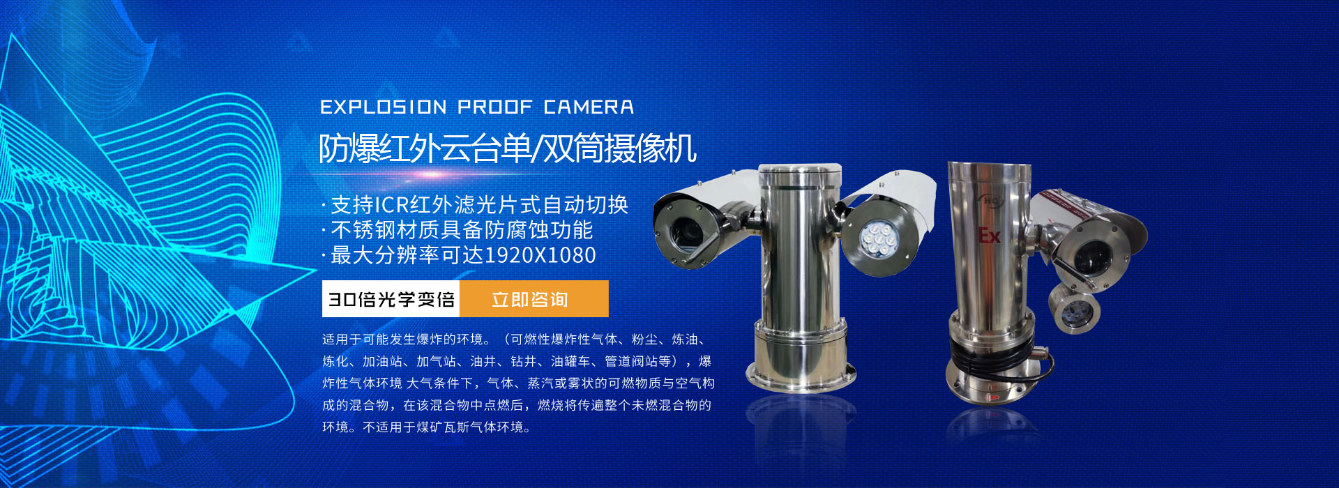 30倍-200萬防爆紅外高清智能云臺攝像機-【30倍-200萬】防爆標志:Ex d ⅡC T6 Gb/ExtD A21 IP68 T80℃;304.316不銹鋼材質具備防腐蝕功能;200萬像素 逐行掃描1/2.3”CMOS;最大分辨率可達1280X960;30倍光學變倍,焦距為4.7-94mm